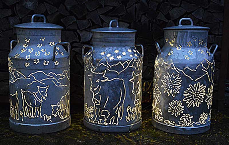 Milchkannen von Hand ausgeschnitten, Sujet nach Wahl